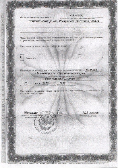 | Адрес местонахождения образовательной организации* | 368424,Республика Дагестан,Тляратинский район, с.Росноб, улица Роснобская 82 |